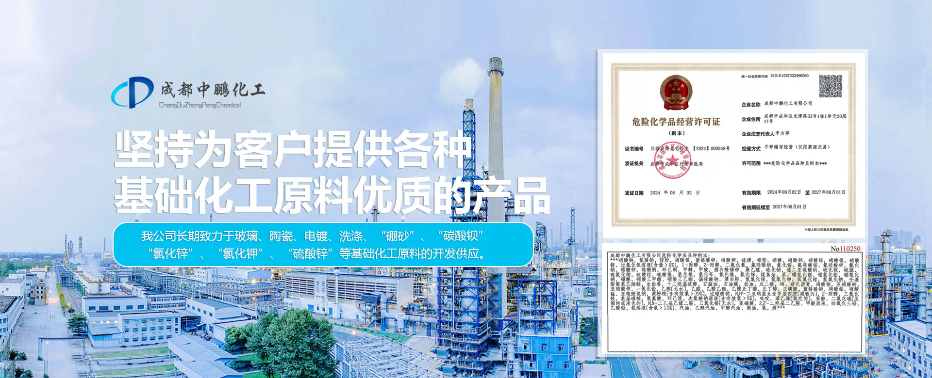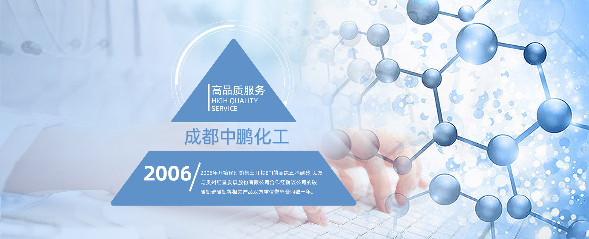 成都中鵬化工有限公司成立于2001年,位于成都市新都區(qū)木蘭木名商塑化城2棟11號(hào),公司成立16年以來,一直堅(jiān)持為客戶提供各種基礎(chǔ)化工原料的產(chǎn)品。我公司長(zhǎng)期對(duì)于玻璃、陶瓷、電鍍、洗滌、“硼砂”、“碳酸鋇”、“氯化鋅”、“氯化鉀”、“硫酸鋅”等基礎(chǔ)化工原料的開發(fā)供應(yīng)。 公司現(xiàn)在員工上百人,在全國(guó)擁有多個(gè)營(yíng)銷體系和完善的售后服務(wù)體系,長(zhǎng)期以來,通過為客戶提供各種基礎(chǔ)化工原料的產(chǎn)品,形成了良好的合作關(guān)系...